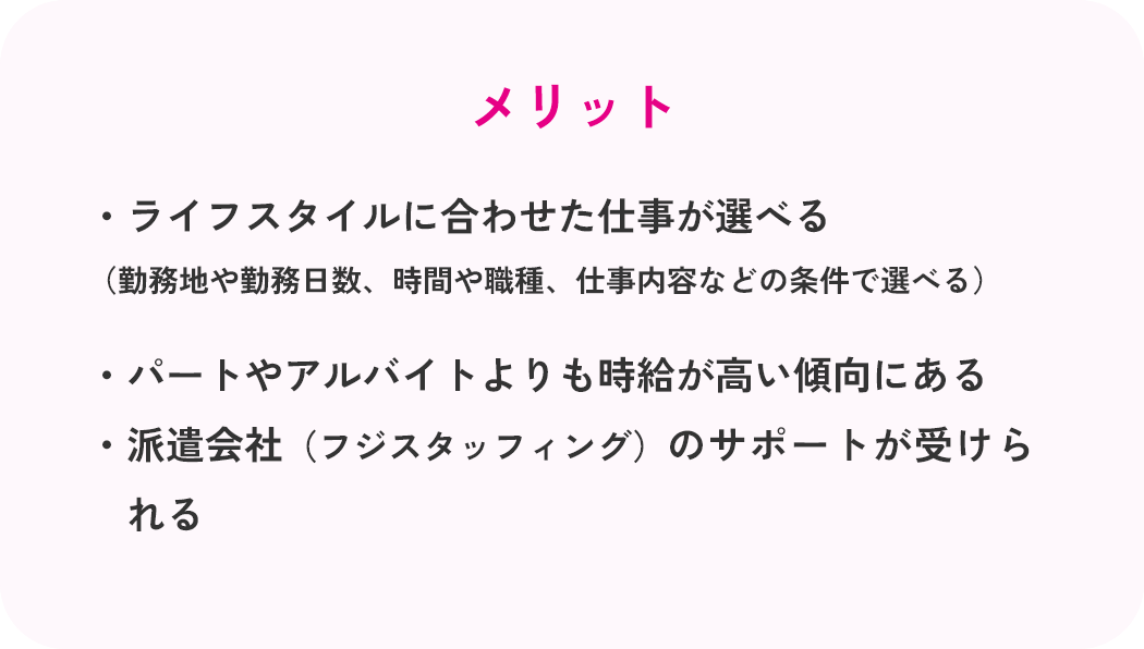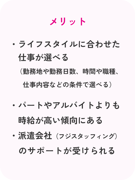 - 派遣会社からの手厚いサポートを受けられる