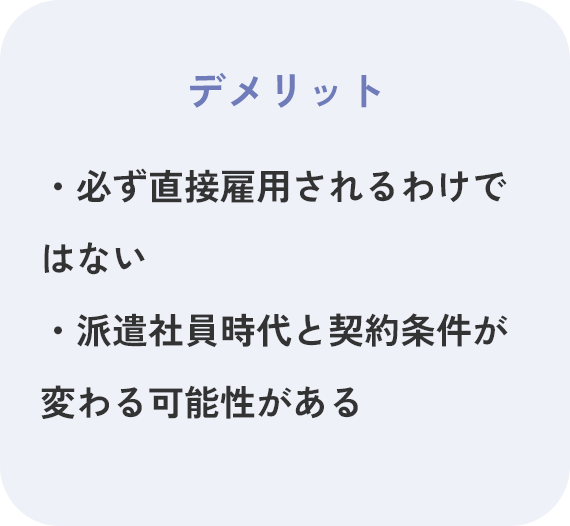 働いてみたら、お仕事や環境、社風が「イメージしていたのと違う!?」でも、実際に働いてみないとわからない…そんな不安を解消してくれるのが『紹介予定派遣』です。