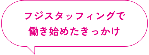 正社員として働いている時に来てくれていた派遣パートさんがフジの方でした。皆さんとてもいい方ばかりでした。年齢が社員の方より上なので、子育て経験があるということもあり、仕事で子供の対応に悩んでいた時もフォローしつつ沢山のことを教えてくれました。こんな素敵な人達の集まる所に私も行きたいなと思い、退職後はそこでお世話になろうと思ったのがきっかけです。